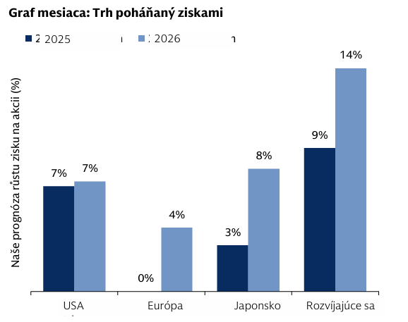 - Graf mesiaca: Zdroj: Goldman Sachs Global Investment Research a Goldman Sachs Asset Management. K 31. októbru 2025. Graf zobrazuje odhady Goldman Sachs Global Investment Research týkajúce sa rastu zisku na akciu v rokoch 2025 až 2026.